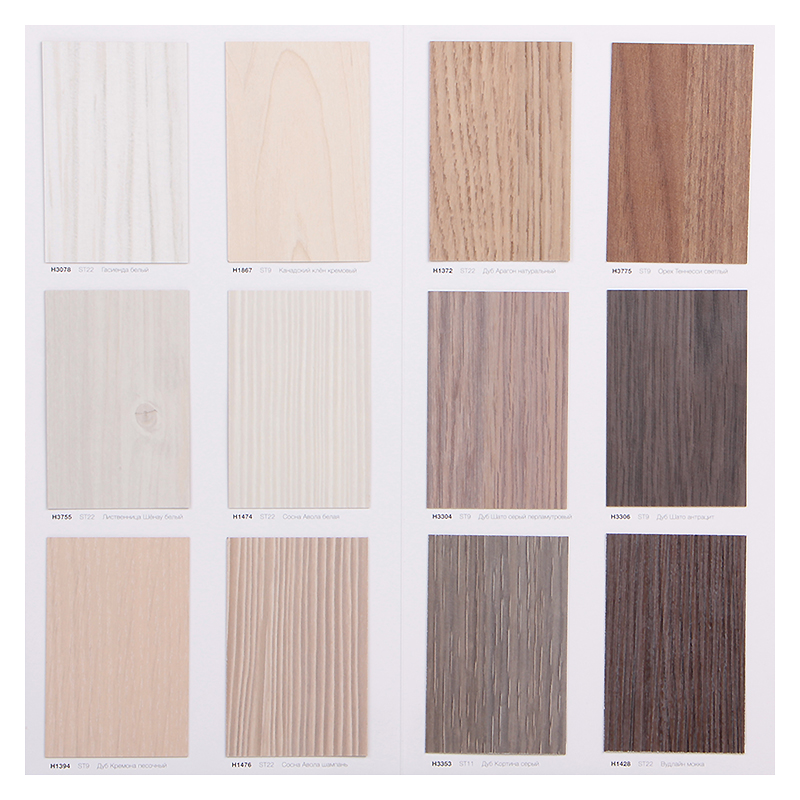 - Standart – універсальний вибір меламінових покриттів в традиційному й ультрасучасному форматі, імітація популярних сортів деревини для виробництва меблів і торгового устаткування.