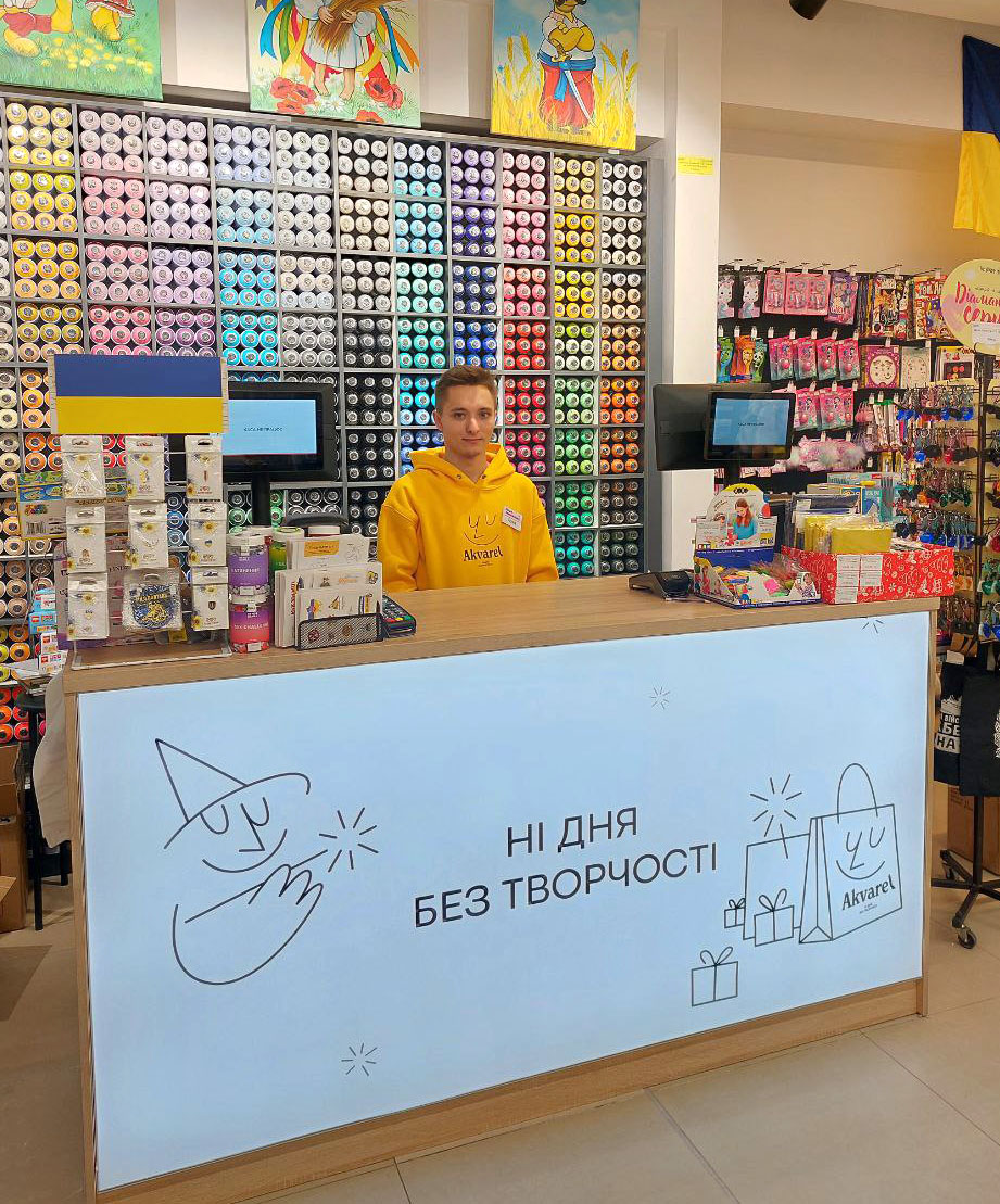 В магазині є широкий асортимент товарів для творчості, художніх і канцелярських товарів, широкий вибір книг всіх можливих жанрів та тематик, дитячі іграшки, пазли, картини за номерами та ще тисячі товарів, які чекають на полицях магазину свої покупців.