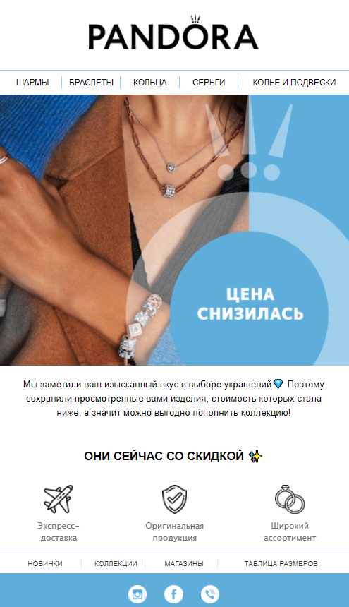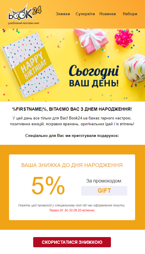 - Листи-рекомендації: добірки товарів, заснованих на попередніх покупках клієнта.