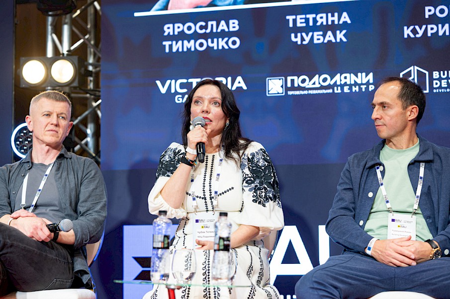 Питання еволюції торгових об’єктів на XII RAU Summit 2025 обговорили Ярослав Тимочко, директор ТРК Victoria Gardens, БЦ Viking, M10 Lviv Industrial Park, Роман Курицький, засновник Building Development, Петро Пуняк, співзасновник WR Group, Тетяна Чубак, директор з розвитку ТРЦ Подоляни, Галина Лакіш, комерційна директорка Lev Development та модератор Наталія Антоненко, CEO Порт Сіті Груп.