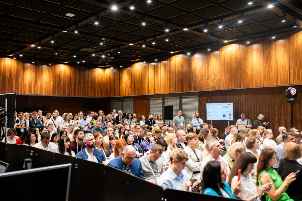 У залі №1 розпочалася перша сесія, яка присвячена маркетингу, що дає результати. Серед спікерів були топ-менеджери Netpeak Ukraine, БФК Gulliver, Brocard, SMART business, Moyo, SOVA, Kearney Україна та NAI Ukraine