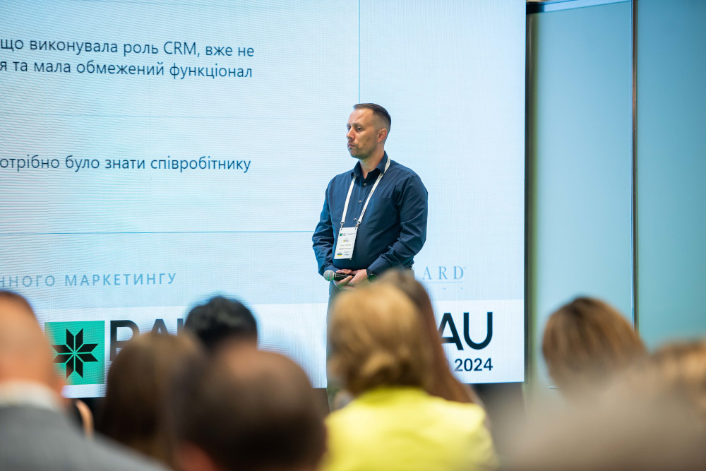 Зі спільною презентацією виступають керівниця проєкту впровадження Brocard Оксана Медвєдєва та Product Owner SMART CRM | Business Development Manager SMART business Денис Шевчук. Вони розповідають про комплексні ІТ-рішення, які допомогли трансформувати клієнтський досвід, а також про сучасні виклики маркетингу в умовах 5-річної турбулентності (пандемія коронавірусу та повномасштабне вторгнення росії в Україну).