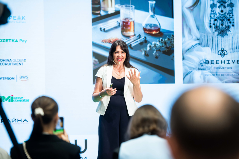 Ніна Домбровська, співвласниця Beehive Cosmetics, співзасновниця та співпрезидентка Women on Boards Ukraine. Презентація «Beehive Cosmetics: Новий бренд у одній з найбільш імпортозалежних категорій в українському ритейлі – категорії косметики».
