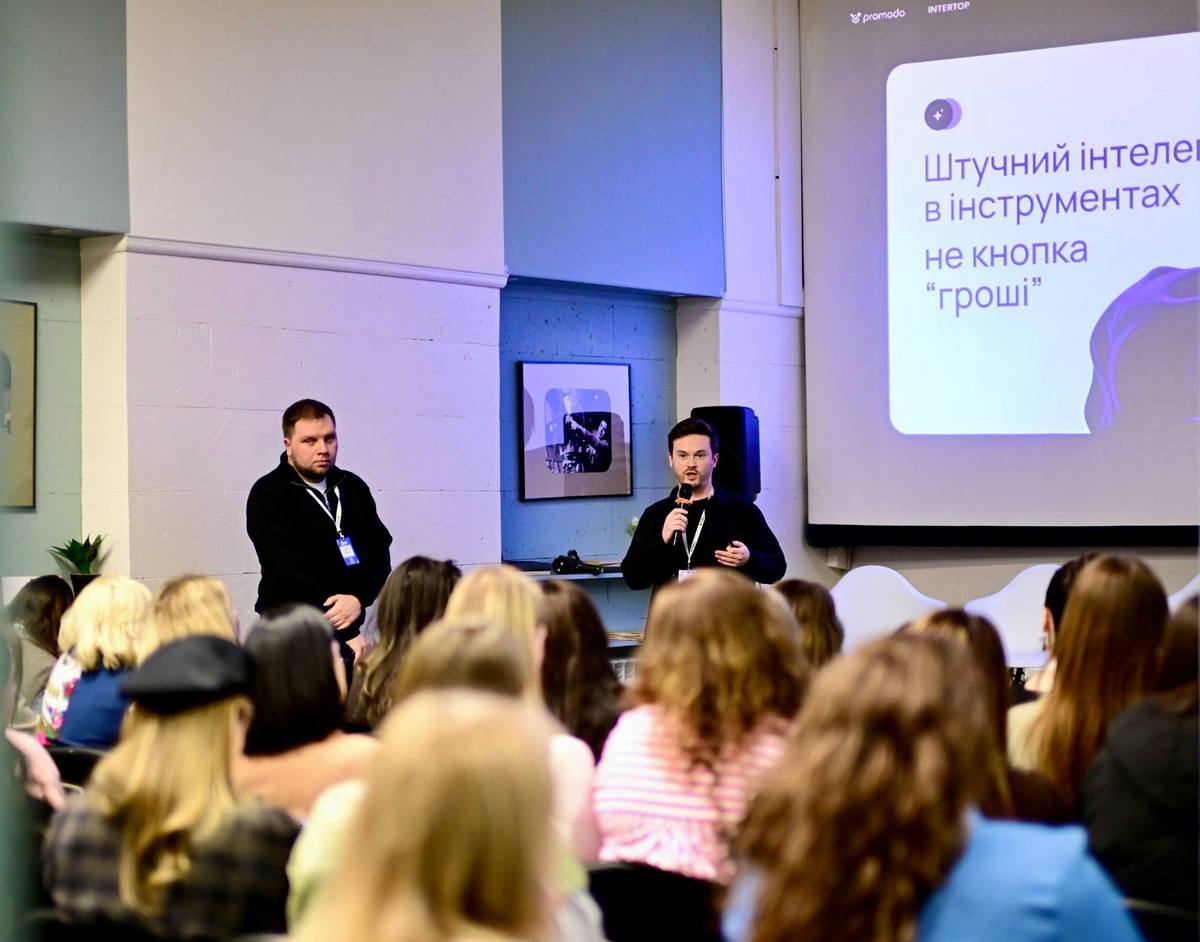 Після Ілони із презентацією “Як Intertop вдалось подвоїти продажі з Facebook та Instagram” виступили Вʼячеслав Зінькевич, Head of Digital Marketing & Onilne Sales Intertop, та Олексій Хавіло, TL Customer Success Promodo.