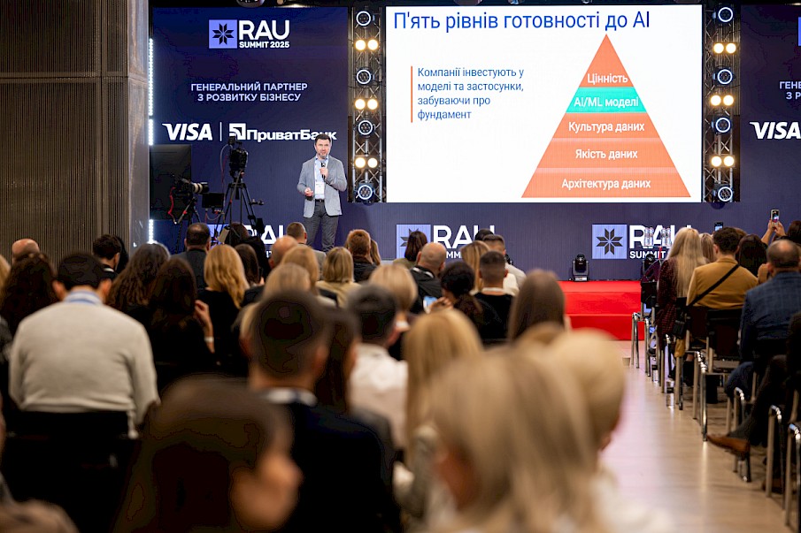 На сцені – Ігор Філіпенко, директор департаменту розширеної аналітики RBC Group розповів, чому більшість AI-проєктів провалюються та як «піраміда потреб для AI» допомагає вибудувати аналітику у правильній послідовності.