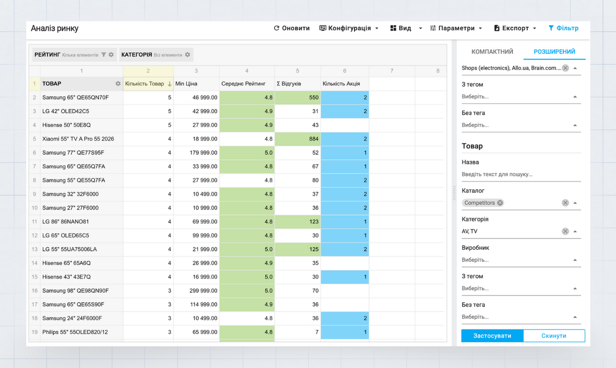 Конкурентний аналіз — це не тільки моніторинг цін. Систематична робота з даними про асортимент і наявність товарів на ринку допомагає бачити можливості там, де конкуренти їх не помічають.