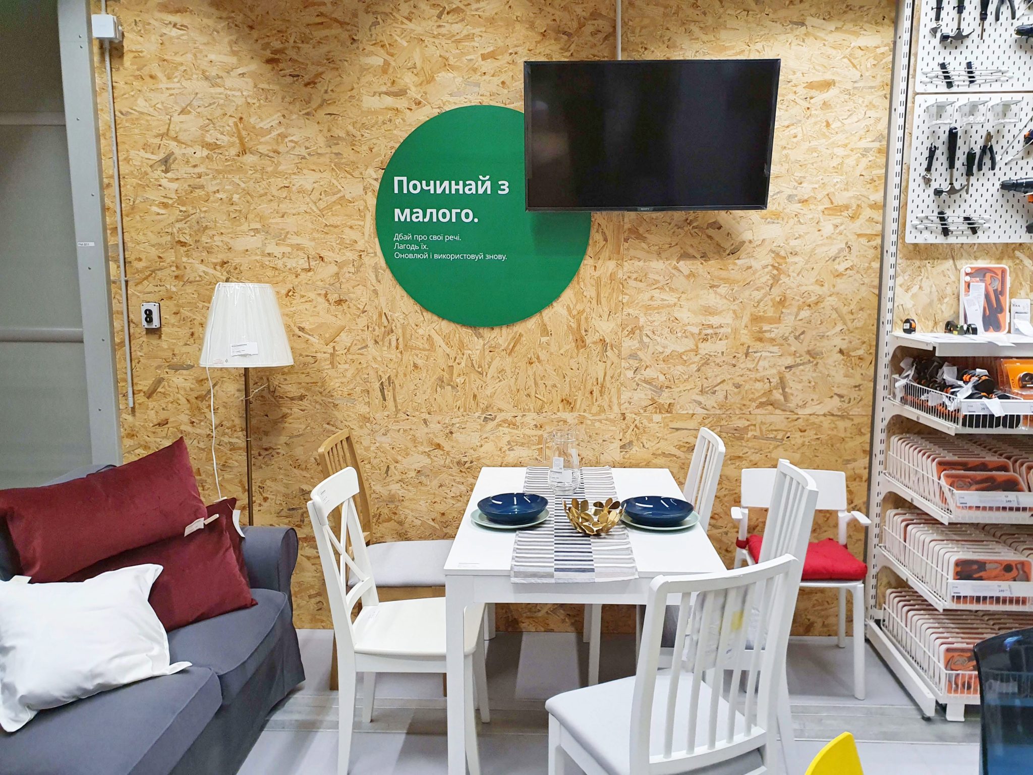 В одній із зон столичного магазину працює центр відновлених товарів для повторного продажу повернутих замовлень. Тут також можна відновити власні меблі від IKEA і забрати для повторного використання.