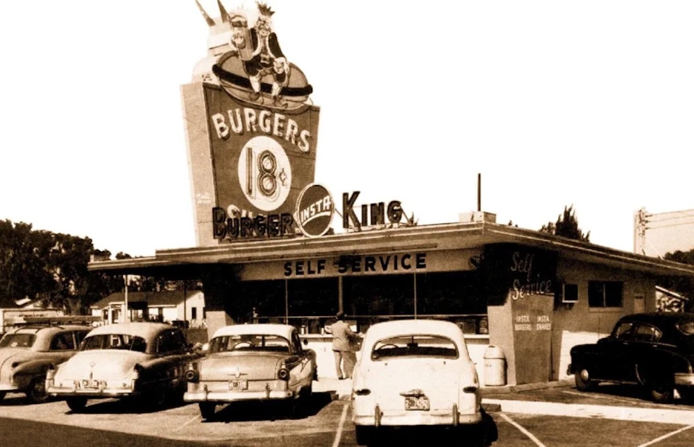 Burger King був започаткований Метью Бернсом та його зятем Кітом Крамером, які прагнули взяти участь у франчайзинговому бізнесі швидкого харчування. У 1952 році Метью запросив Кіта до Каліфорнії, щоб подивитися на успішні бізнес-проєкти, такі як McDonald’s (заснований у 1940-х роках). Повернувшись до рідного міста Кіта, Джексонвілля, штат Флорида, напарники у 1953 році відкрила власний ресторан Insta-Burger King.