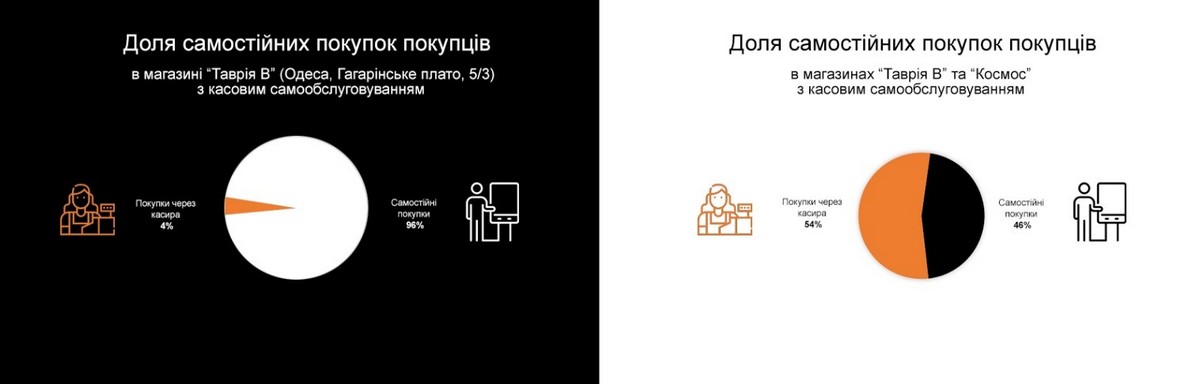Проте, справжнім чемпіоном є супермаркет Таврія В в Одесі за адресою Гагарінське плато, 5/3, де 96% покупок сплачується покупцями власноруч, без залучення касового персоналу.