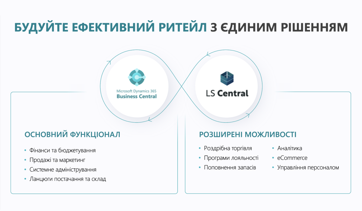 Основний продукт компанії, LS Central — це уніфіковане рішення, яке дозволяє ритейлерам управляти, оптимізувати всі процеси, які пов’язані з торгівлею, та контролювати їх на одній програмній платформі. Воно розширює можливості ERP-системи Microsoft Dynamics 365 Business Central і об’єднує інформацію про фінанси, точки продажів, ланцюг постачання, e-commerce та програми лояльності в єдине рішення. Більше не потрібно налаштовувати та поєднувати безліч програм і додатків, узгоджувати розрізнені дані. Усе необхідне — під рукою.