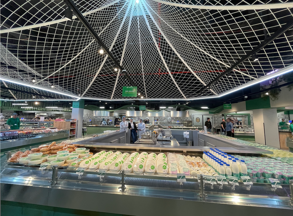 Під час розробки концепції магазину ми так само спирались на місцеві нюанси. Наприклад, грузини також люблять базари, але для них базар – це певна ностальгія за минулими часами. Тому в магазині має бути базарна викладка товару, коли одного SKU багато. Наприклад, викладка куриці зайняла в магазині близько двох метрів. А у фермеерському відділі четверту частину простору займає сир. Тобто така викладка в місцевому сприйнятті – це круто, і зовсім не означає, що мало асортименту.