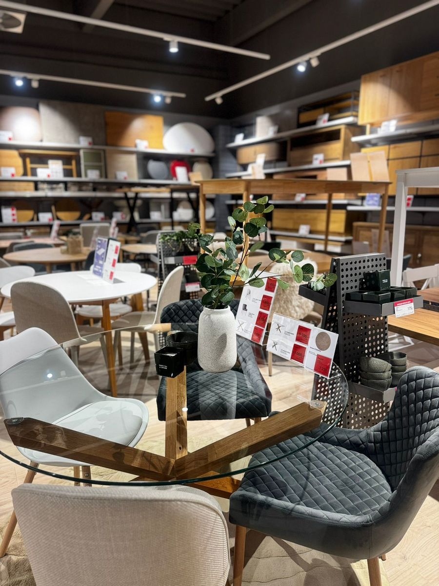 Площа магазину становить: торгова площа — 1007 кв. м, склад — 238 кв. м, соціальні приміщення — 36 кв. м. У новому магазині представлений широкий вибір товарів для дому у скандинавському стилі: меблі для дому та саду, матраци, подушки та ковдри, текстиль і декор, товари для облаштування житла.