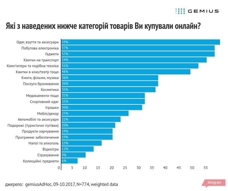 Компанія Gemius в вересні-жовтні 2017 року провела дослідження ecommerce-сектора в Україні, зокрема – купівельних звичок інтернет-аудиторії в країні.