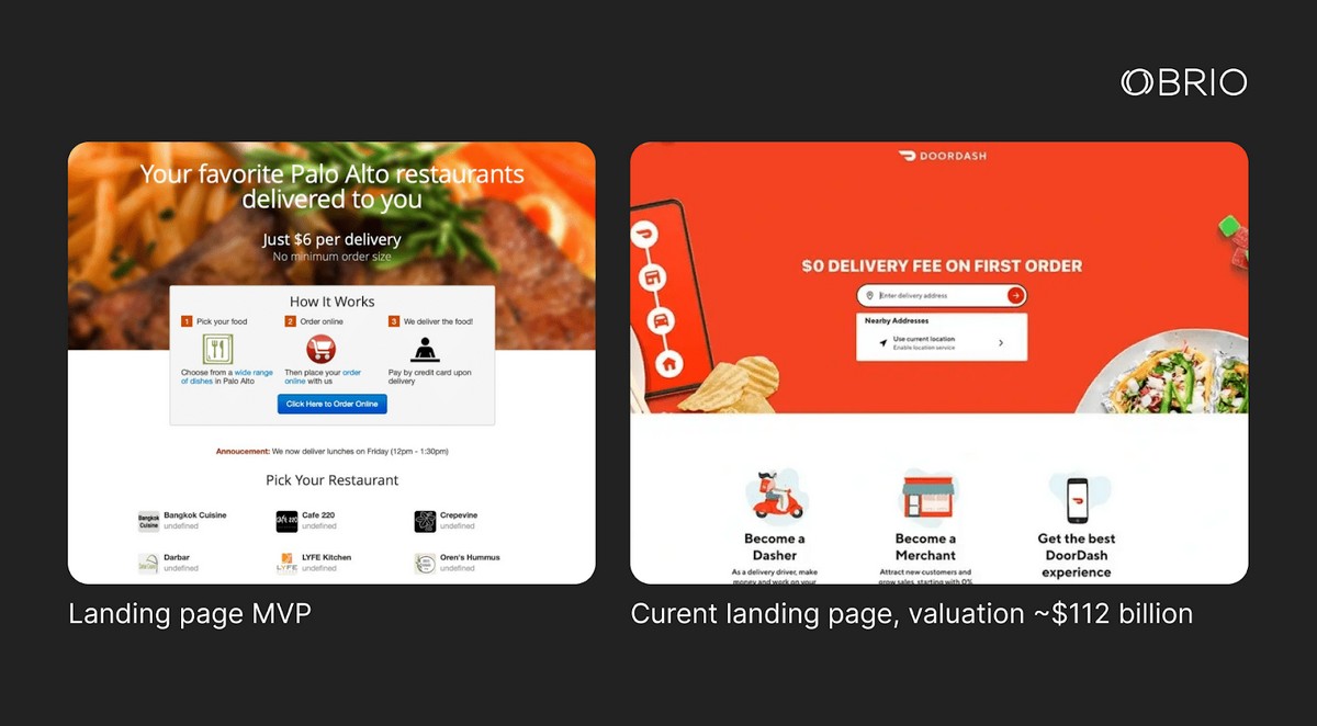DoorDash у 2013 році стартував із простого сайту з PDF-меню кількох ресторанів і номером телефону, який переадресовував дзвінки на мобільні засновників. Протягом двох місяців вони тестували MVP, самі доставляли їжу та паралельно переконували ресторани долучатися до сервісу. Довівши наявність попиту, команда пройшла в Y Combinator, залучила інвестиції й почала масштабувати модель.