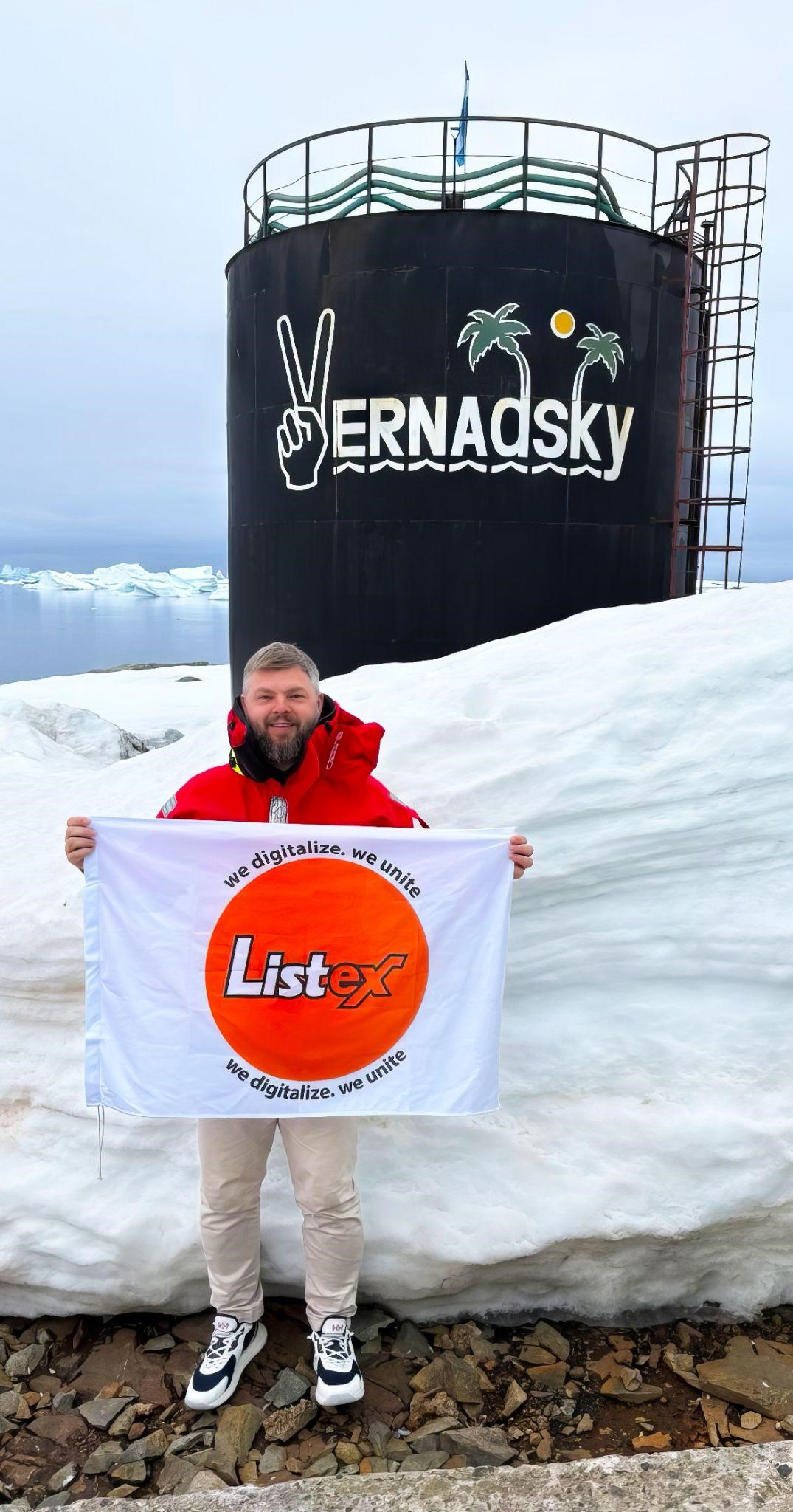 Під час експедиції Chief Technology Officer Listex Євген Соловйов розгорнув прапор компанії на одному з найвіддаленіших континентів планети, продемонструвавши: українські технології не мають географічних меж. Проєкт мав прикладний характер і був спрямований на демонстрацію підходу компанії до роботи з цифровими даними незалежно від локації, умов зйомки чи контексту використання.