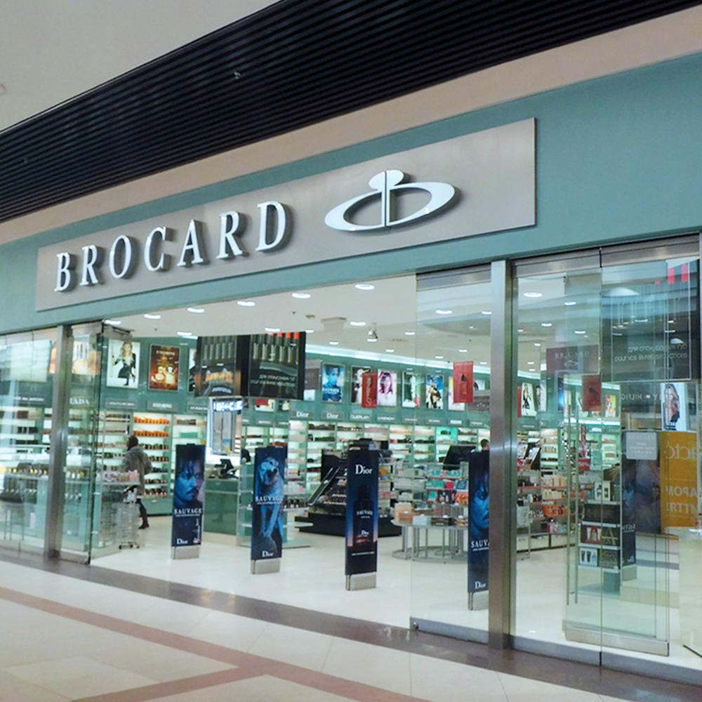 Одним із перших сучасних торгових центрів був київський Globus, який відкрився у 2002 році. Тут працює магазин Brocard – наш перший парфумерно-косметичний магазин відкритого типу площею близько 500 кв. м із вільним доступом до товарів й тестерів.