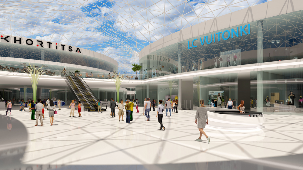Уявіть собі купол Nikolsky – поки що найбільший в Україні. У Khortitsa Mall світопрозора конструкція буде в три рази більше за площею! Це, звичайно, великі фінансові витрати, але ми готові до цього заради створення чергового архітектурного шедевру на ринку торговельної нерухомості в Україні. Щодо інтер’єру, то ми будемо використовувати багато фішок, які успішно були реалізовані в ТРЦ Nikolsky. Звичайно, новий центр буде відрізнятися, але також будемо тематичним ТРЦ: він присвячений історії Запоріжжя та острова Хортиця в сучасному виконанні без «шароварщини». Плануємо використовувати багато різних інсталяцій, скульптур, панно на фасадах, мегаекрани, тераццо на підлозі.