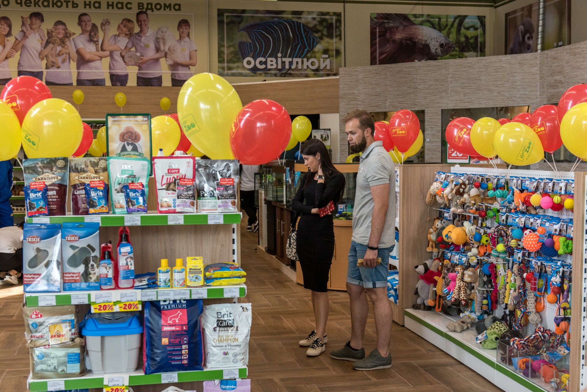 У новому зоомаркеті представлено понад 20 торгових марок кормів для тварин – як для котів і собак, так і для акваріумних рибок і навіть вибагливих коропів-які. Вражає і різноманітність лежанок для собак, амуніції, ласощів, вітамінів, кігтеточок для кішок і багато чого іншого. Варто відзначити, серед них представлені не тільки зарубіжні, а й кращі вітчизняні виробники.