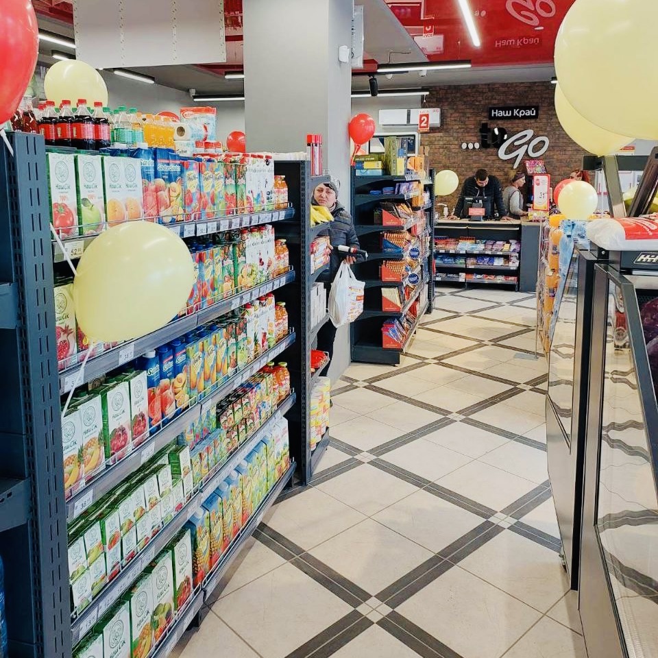 Відтепер жителі Миколаївщини мають змогу купувати якісні та свіжі товари у новій торговій точці. Площа магазину Наш Край у Кінецьполі – 200 кв. м. Для зручності гостей та швидкого обслуговування працює дві каси.
