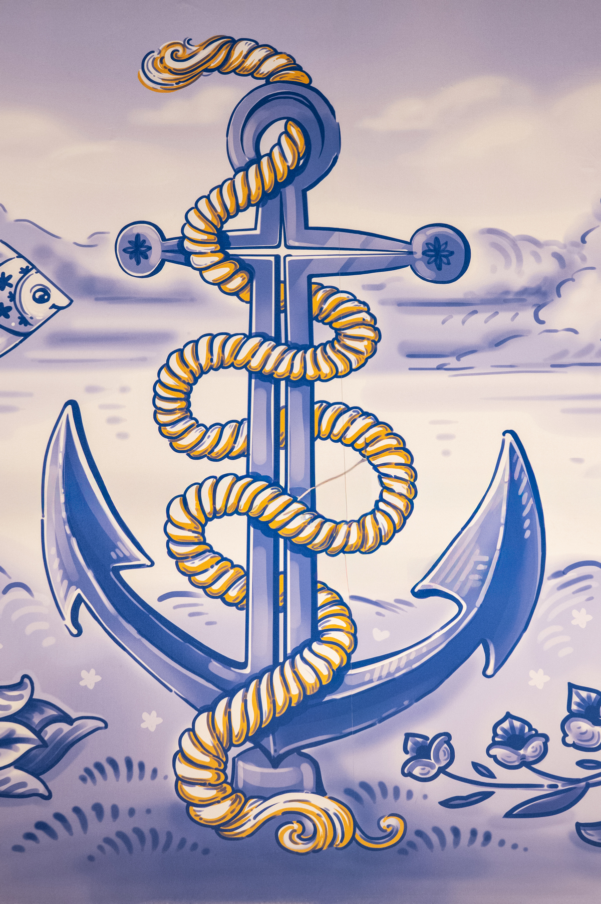 Інтер’єр магазину нагадує атмосферу морського узбережжя: світлі тони, дерев’яна підлога, синя стеля та декоративні панно. На вході — відділ «Власної кондитерської» та кав’ярня, оформлені в морському стилі. Тут стіни розписані вручну, а на колонах можна побачити справжні плитки, які привезли з Португалії. Окрема мозаїка присвячена історії міста Ірпінь.