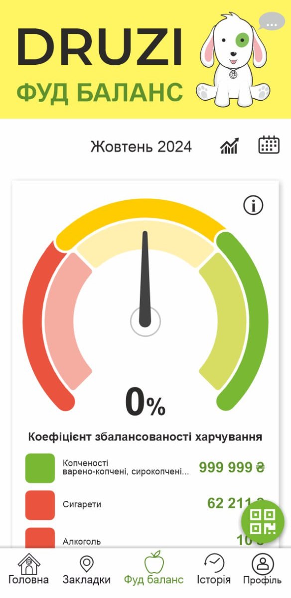 «ФудБаланс» перетворює турботу про харчування на захопливий процес самовдосконалення. Користувачі можуть відстежувати динаміку своїх покупок за різні періоди, що допомагає як окремим споживачам, так і цілим родинам усвідомлено планувати раціон та поступово змінювати звички харчування на користь здоров’я.