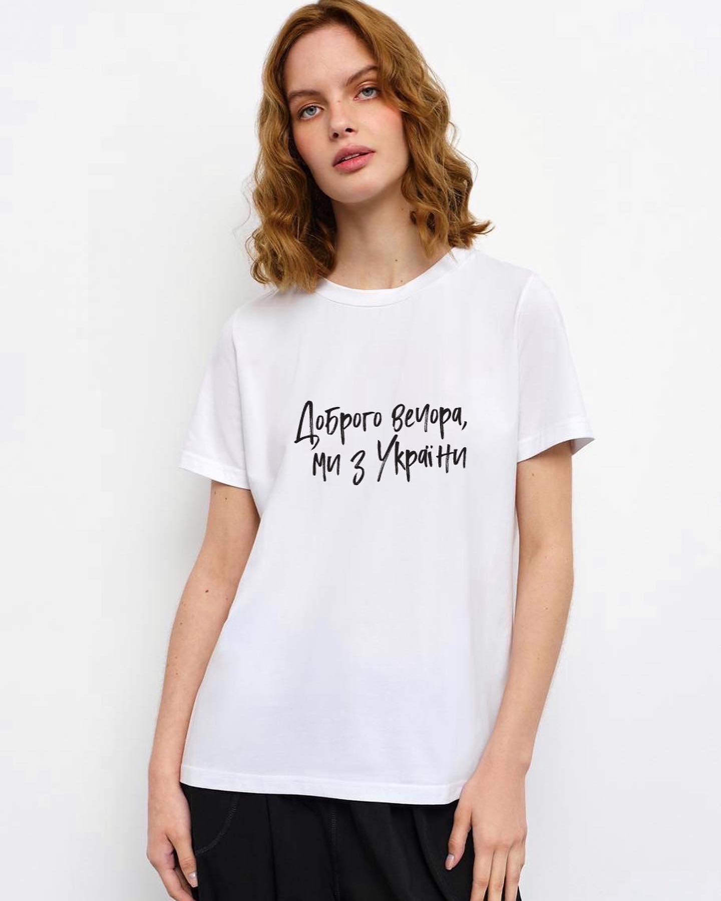 На футболках надруковано фрази, які за останній місяць уже стали крилатими серед українців: «Доброго вечора, ми з України», «Паляниця», «Все буде Україна», «Русский военный корабль иди на …», «Боже яке кончене» та багато інших.