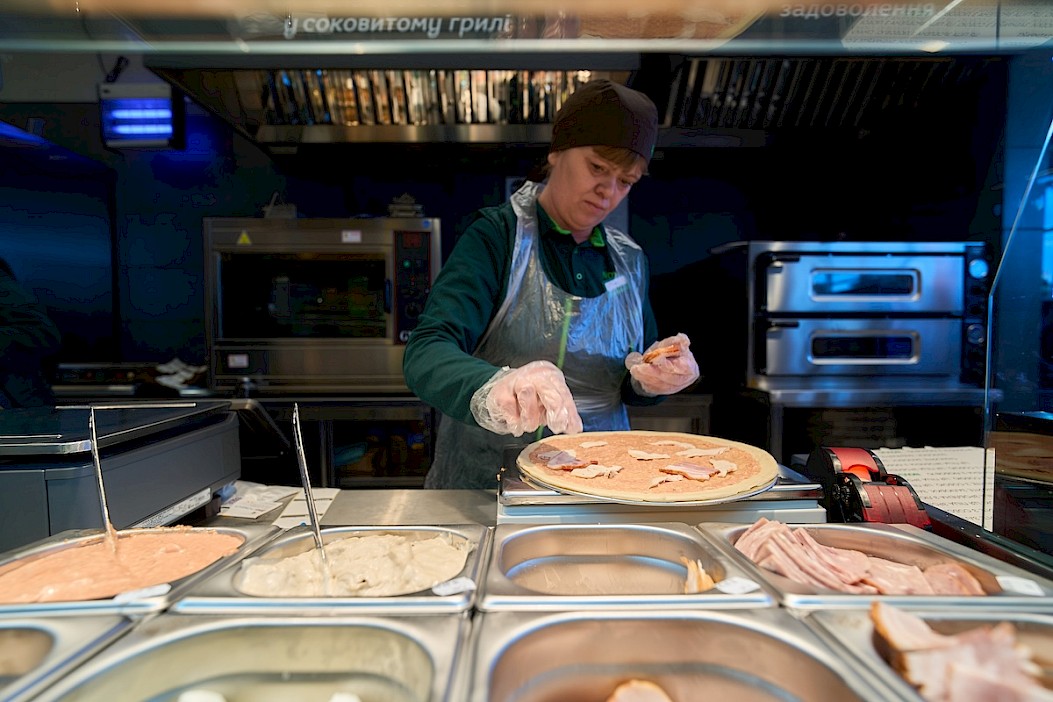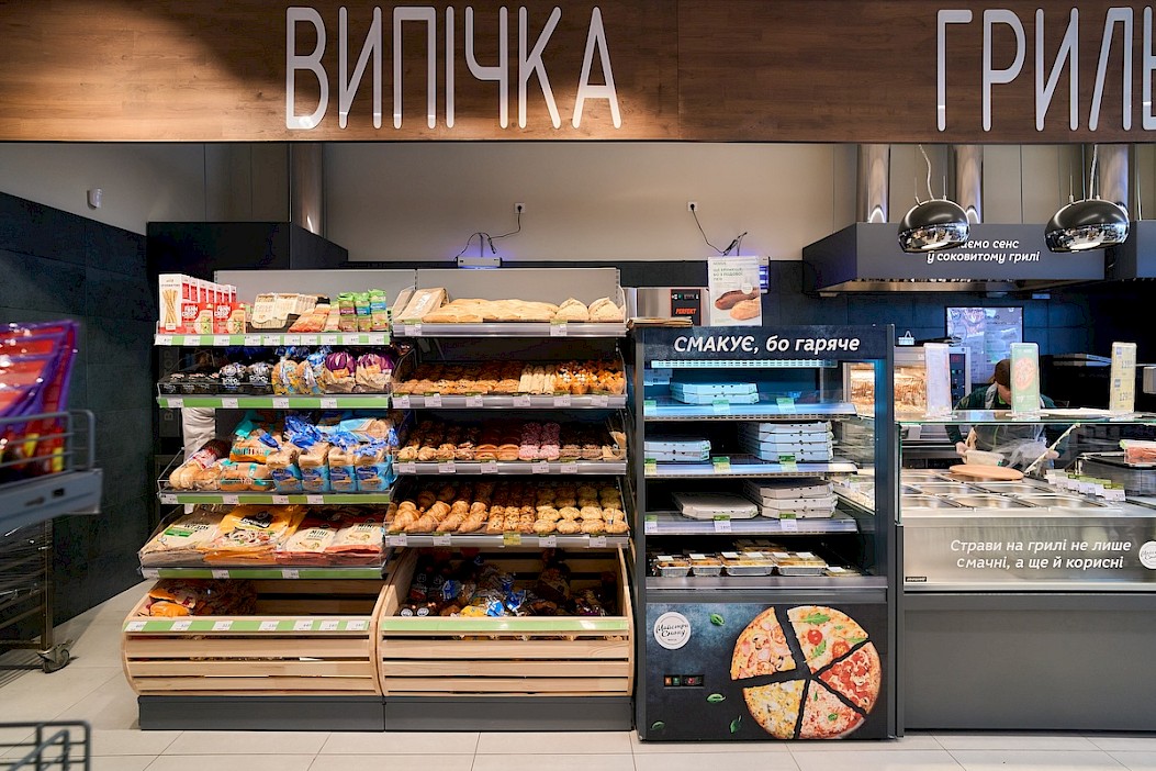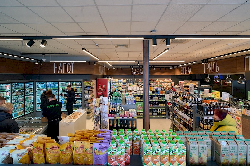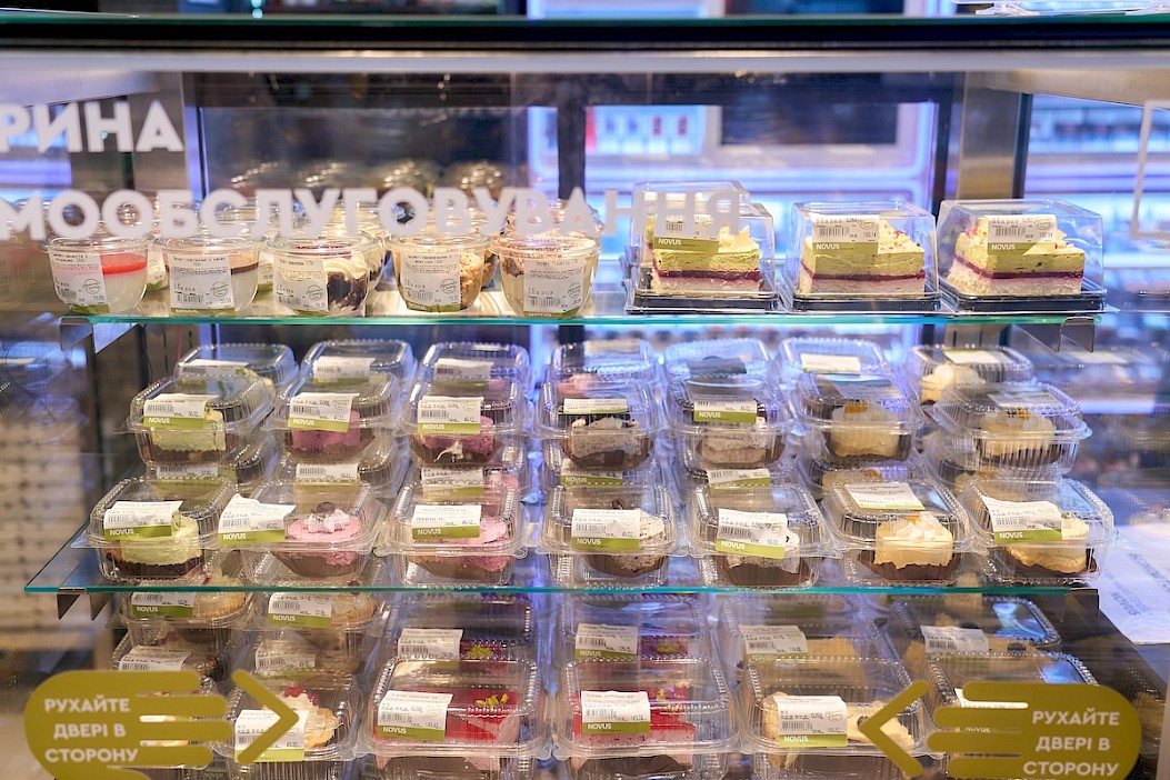 У магазині покупці знайдуть усе необхідне: від базових продуктів до готових страв власного виробництва. Зокрема, тут представлена фірмова кулінарія Novus, гаряча піца, свіжа випічка та хліб, а також товари для дому.