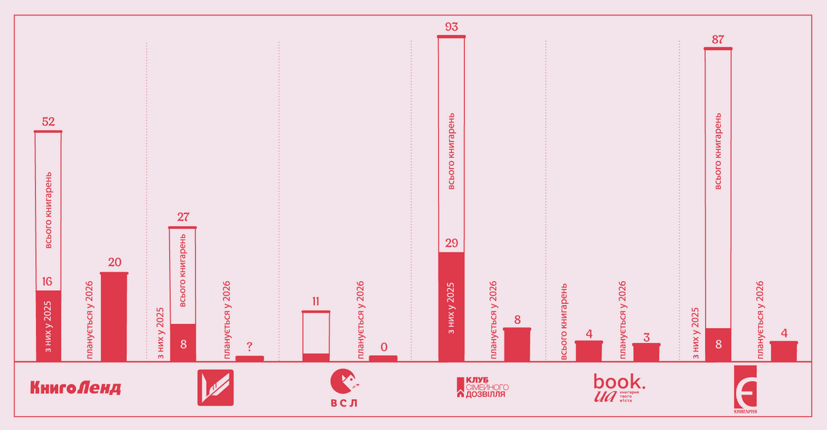 Інтернет видання Читомо склало перелік найактивніших гравців українського книжкового роздробу. За даними мереж і видавництв, з якими поспілкувалося Читомо, станом на початок 2026 року в Україні працюють десятки нових книгарень, відкритих протягом минулого року.