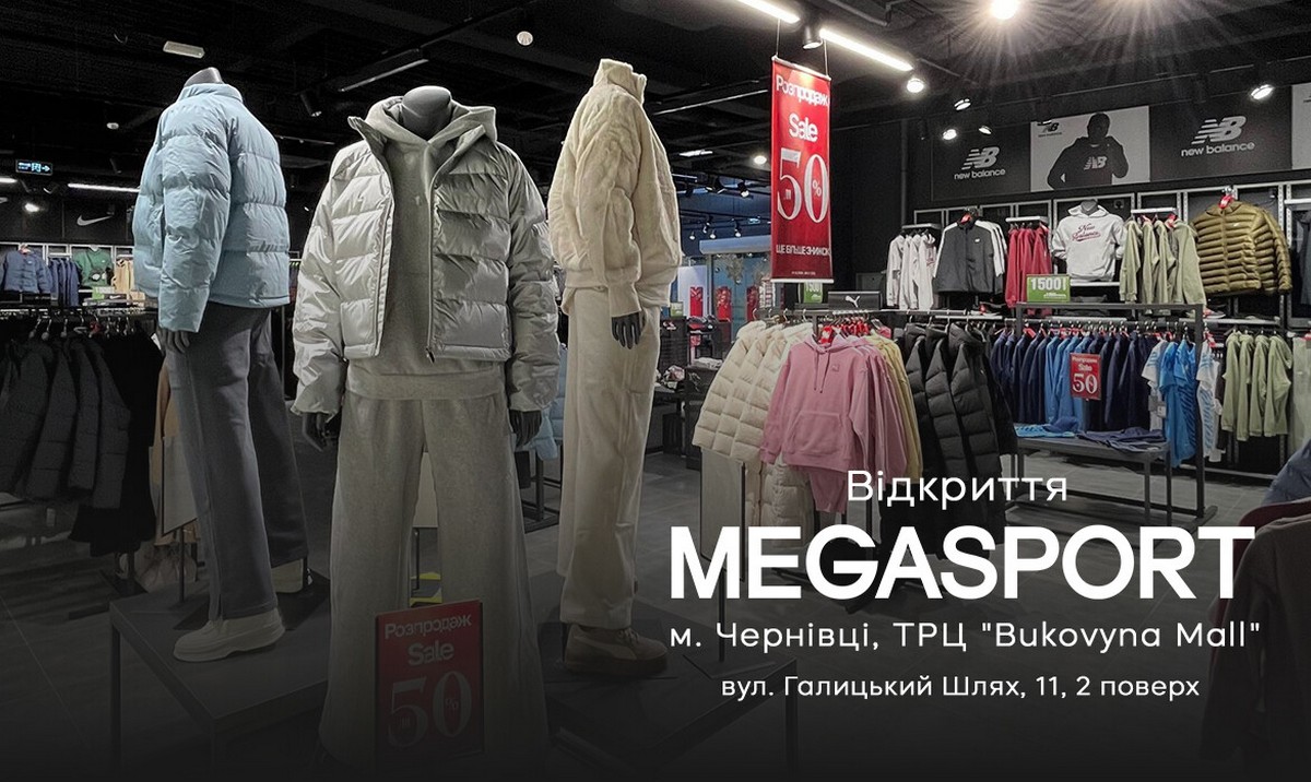Одна з найбільших мереж мультибрендових магазинів Megasport повідомила про майбутнє відкриття 24 січня 2026 року нового магазину на другому поверсі ТРЦ Bukovyna Mall — найбільшого та найсучаснішого торгівельного центру Чернівців (вул. Галицький Шлях, 11). Графік роботи: щодня з 10:00 до 21:00.
