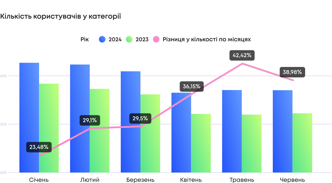 Цікаво, що саме після закінчення періоду масових покупок кількість користувачів у категорії почала збільшуватись в травні-червні вже приблизно на 40% була більшою за показники попереднього року.