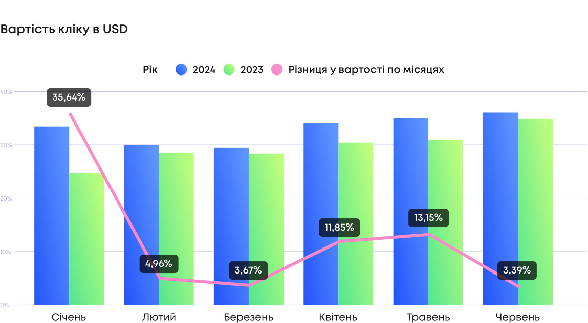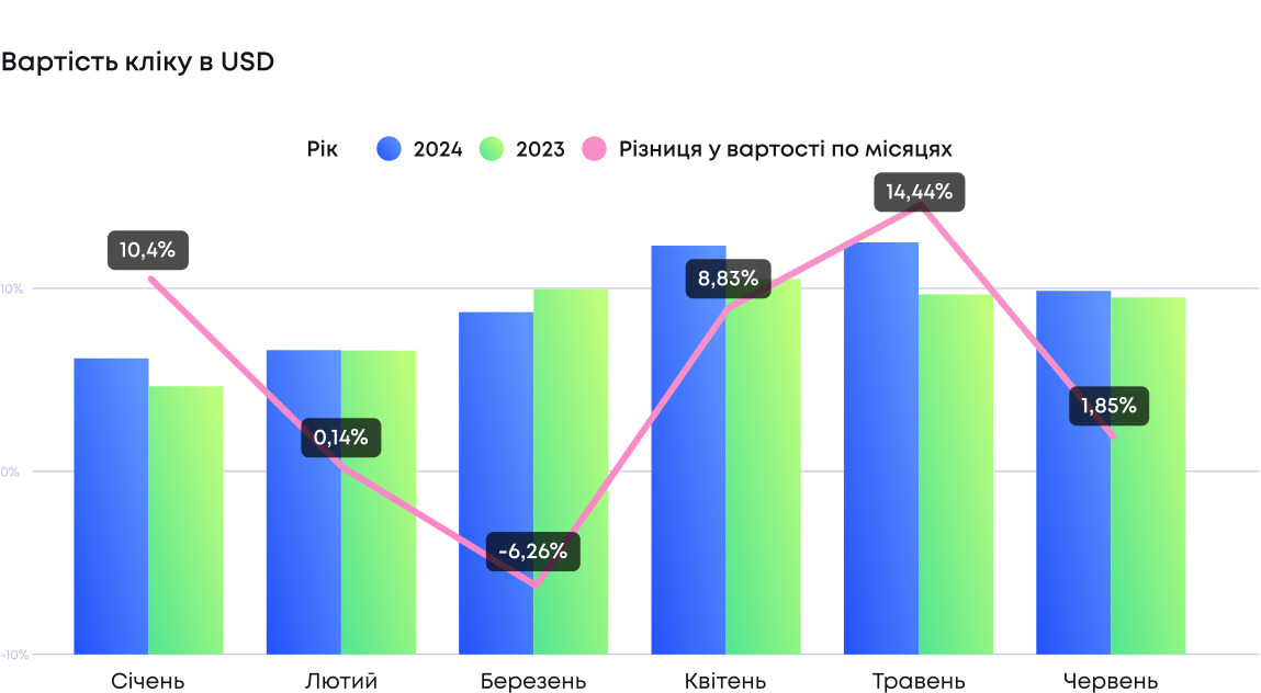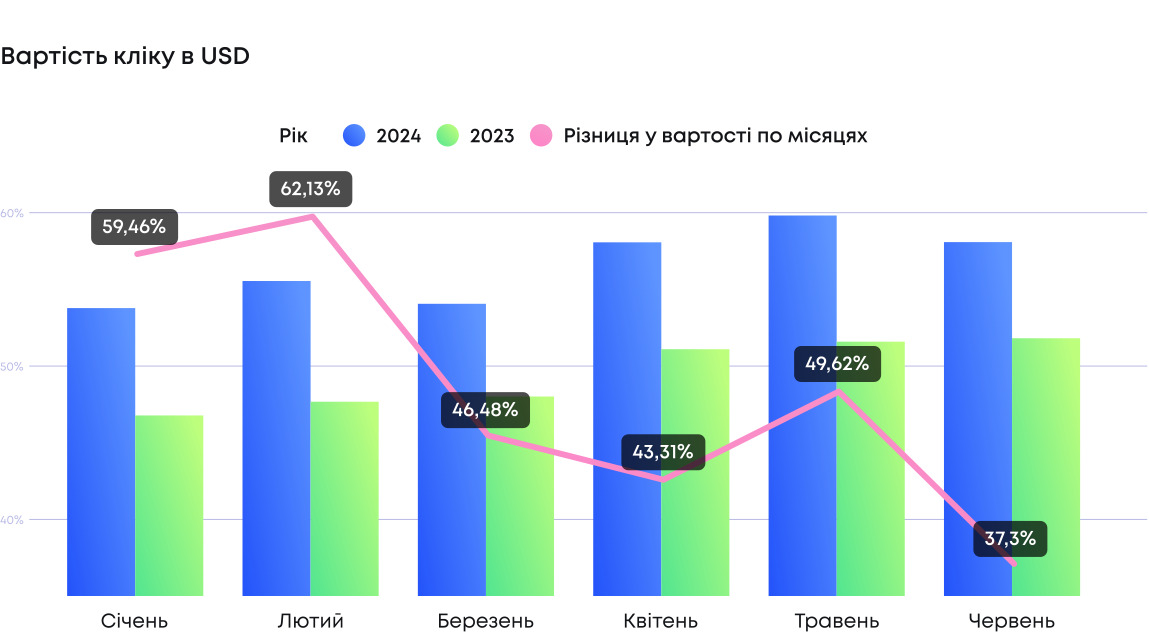 У 2024 році гравці ніші збільшили рекламні бюджети на 70% у валюті. Як припускають дослідники, у минулі роки ритейлери не розвивали так активно онлайн. Тому цьогоріч вкладені в рекламу інвестиції повертаються у вигляді збільшення доходу. Вартість кліку протягом першого півріччя в середньому зросла на 4%.