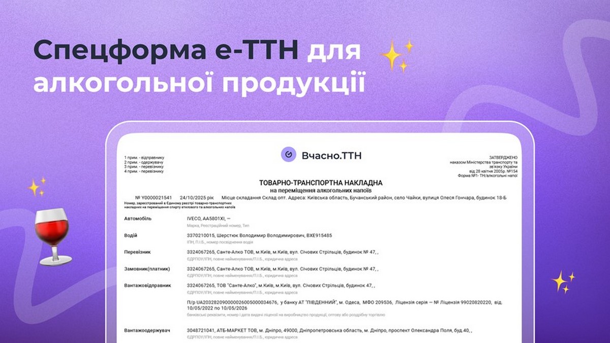 І на початку наступного року вже буде зрозуміло, коли буде обов'язковою е-ТТН для всіх бізнесів. Це станеться, можливо, вже на початку 2027 року. Але може бути і раніше, і це точно буде впроваджуватися по окремим секторам. У «Вчасно.ТТН» не стали чекати обов'язковості впровадження та вже запустили спецформу для алкогольної продукції на запит від клієнта.
