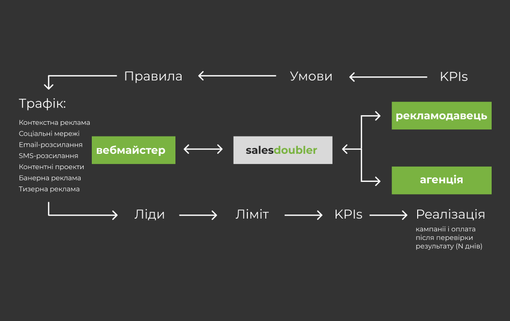 Серед провідних українських СРА-мереж варто відзначити SalesDoubler – надійного партнера у сфері трафіку, який забезпечує високий рівень підтримки як рекламодавців, так і вебмайстрів. У SalesDoubler можна знайти ряд вертикалей: