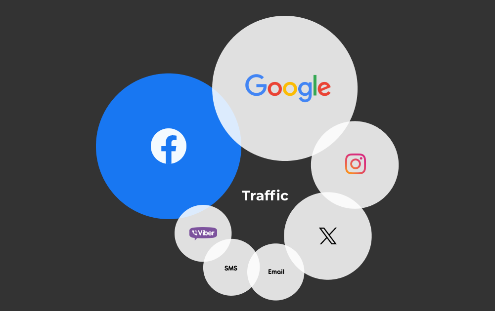 Одними з найпопулярніших джерел трафіку для вебмайстрів є контекстна реклама та таргетована реклама в Facebook. Досить багато SEO спеціалістів зі своїми площадками представлено на платформі SD. Є і інфлюенсери, які роблять публікації в соціальних мережах та мессенджерах, і вебмайстри зі своїми базами даних, які можуть робити розсилки через е-mail, SMS або Viber. Також, є трафікові партнери, які залучають трафік з різних банерних мереж.