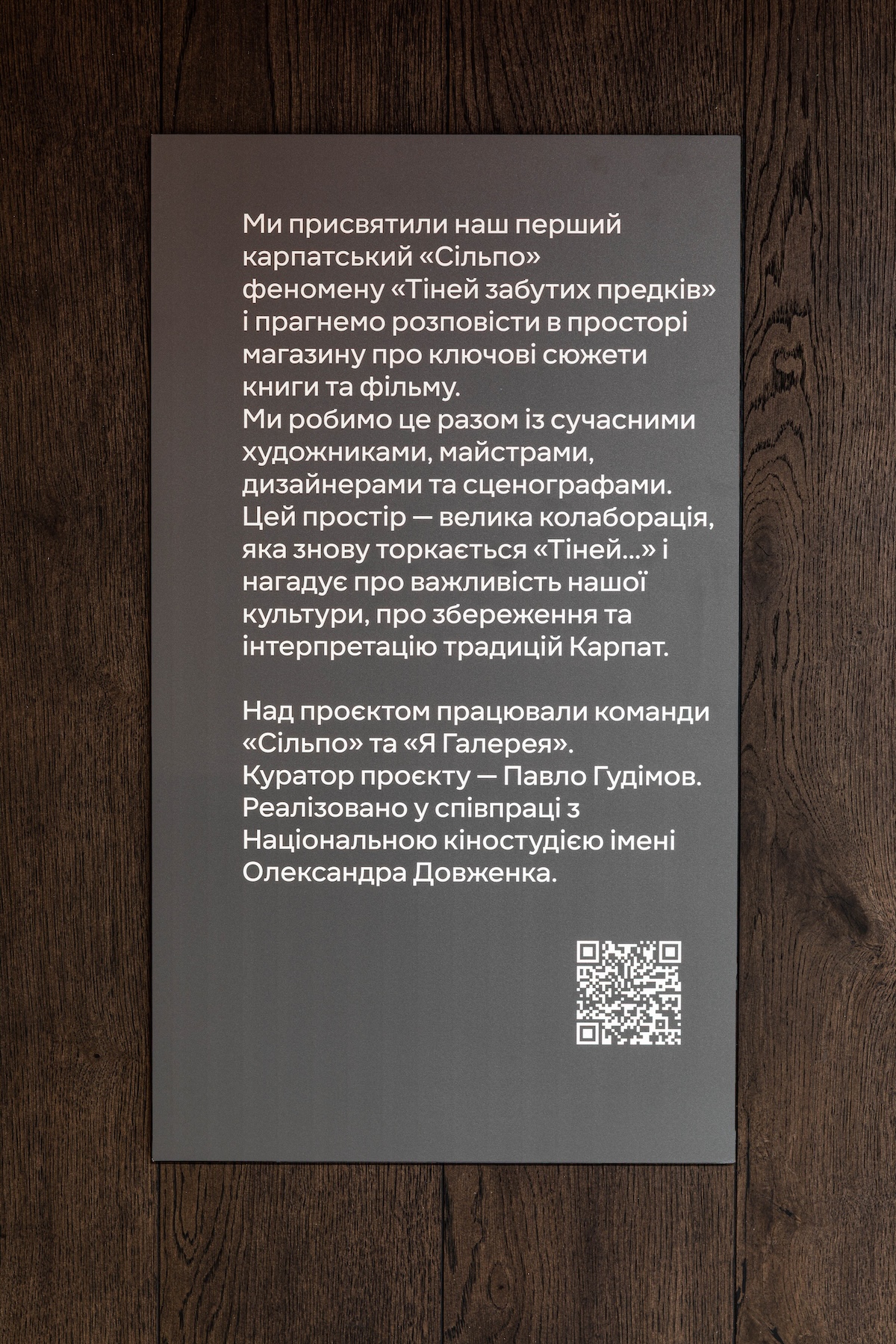 Новий магазин створено за мотивами повісті Михайла Коцюбинського «Тіні забутих предків» та однойменного фільму Сергія Параджанова. «Для нас відкриття супермаркету в Карпатах - надзвичайно важлива подія. Ми хотіли підійти до цього з повагою до регіону, місцевих людей і традицій. Тож шукали тему, яка цікаво й зі смаком розповість історію краю», пояснює директорка з маркетингу Сільпо Катерина Огуряєва.