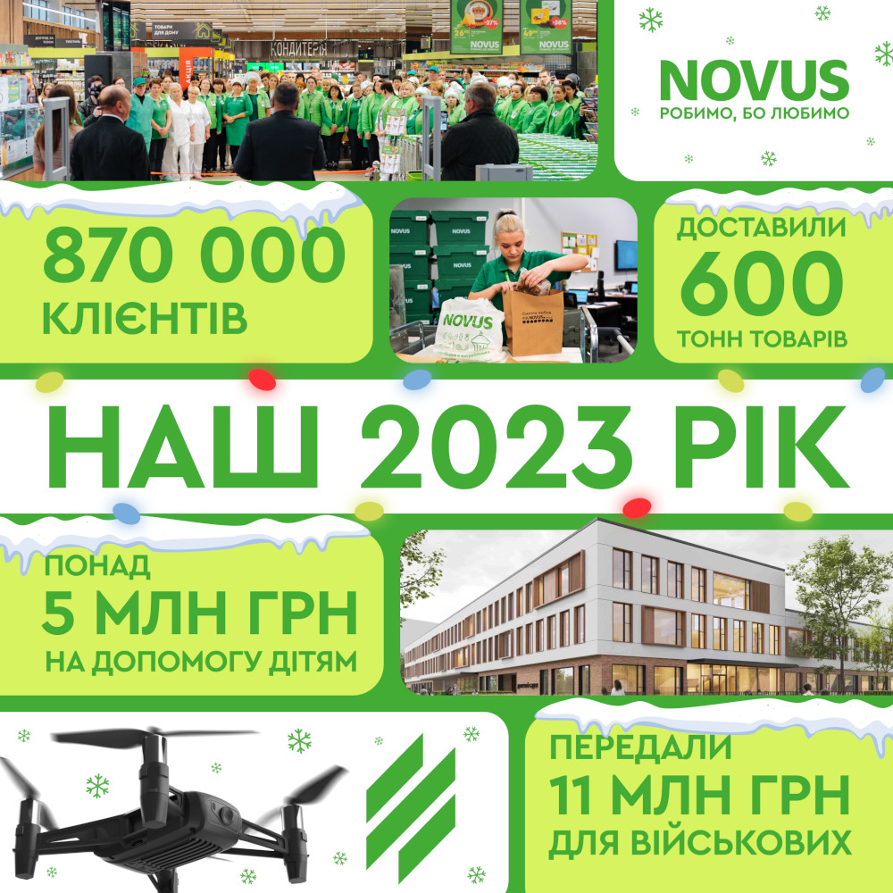 Мережа Novus приділяє особливу увагу підтримці ініціатив, спрямованих на допомогу військовим та дітям, дбає про розширення асортименту для клієнтів, удосконалення сервіс та розвиває напрям доставки: