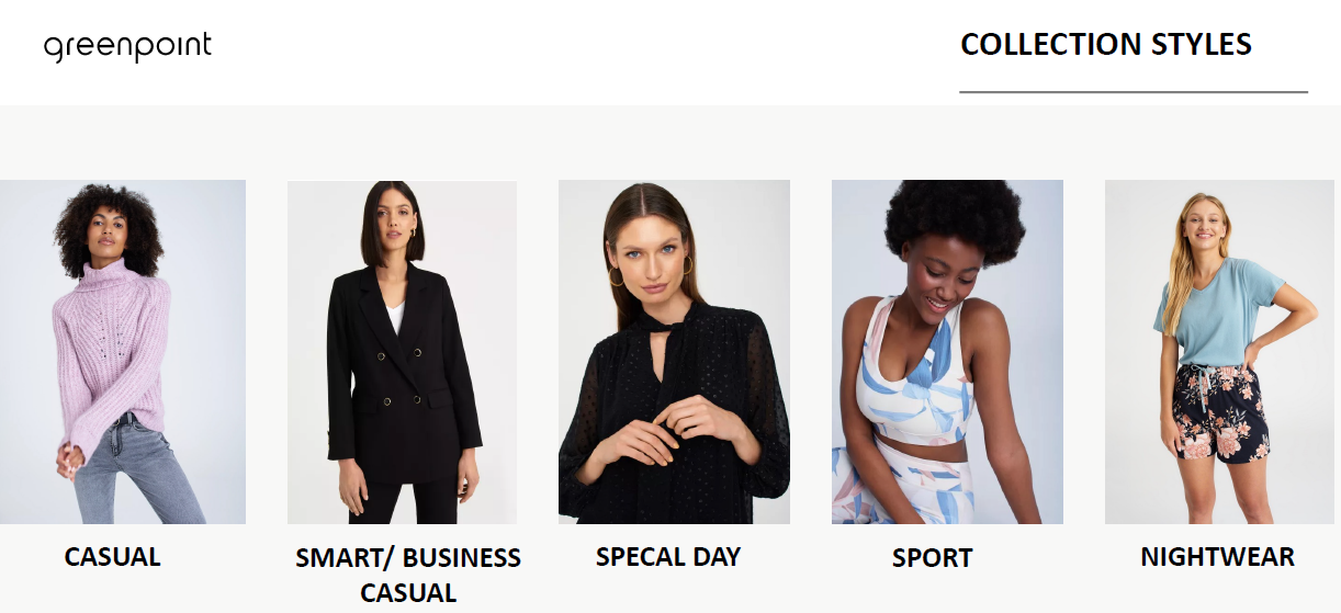 Цільова аудиторія бренду – добре освічені та професійно активні жінки у віковій категорії 30+, які віддають перевагу класичним, стриманим та універсальним фасонам одягу. Компанія має в своєму портфоліо чотири стилі одягу (casual, business casual, sport та nightwear), оновлюючи колекції двічі на рік. На думку генерального директора RDA Андрія Лотоцького, з урахуванням асортименту, цінової категорії та формату (в середньому площа магазинів складає 100-150 кв. м), на українському ринку Greenpoint увійде в пряму конкуренцію з такими брендами як VOVK, Must Have і Orsay.