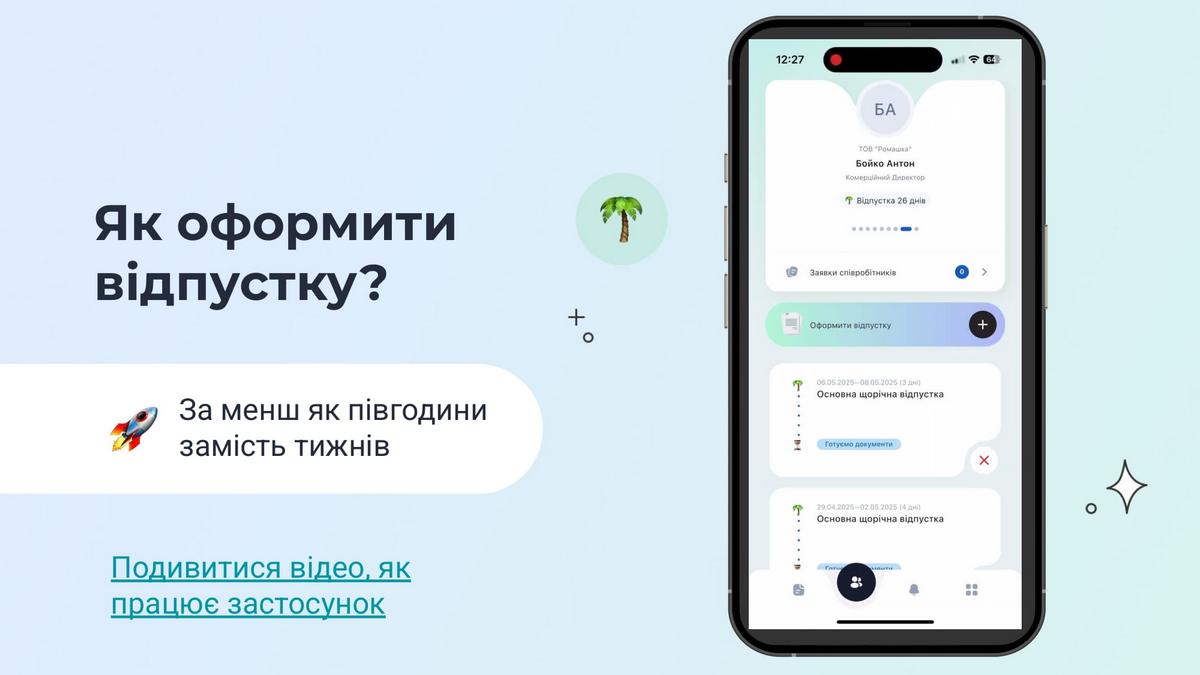 В даному випадку однією з головних цілей було зробити процес оформлення відпустки максимально простим та «непомітним» для співробітника і кадровика. Тому зробили мобільний застосунок для співробітника, де за кілька кліків можна обрати потрібний період відпустки. Далі в цьому ж застосунку його погоджує безпосередній керівник і потім співробітник підписує документи.