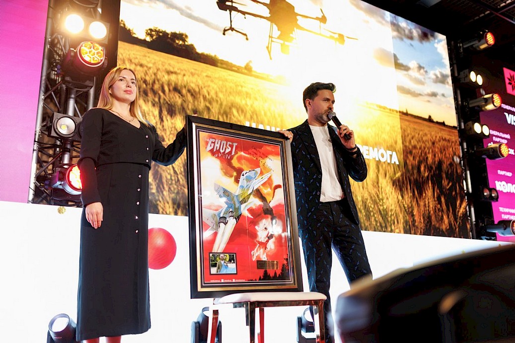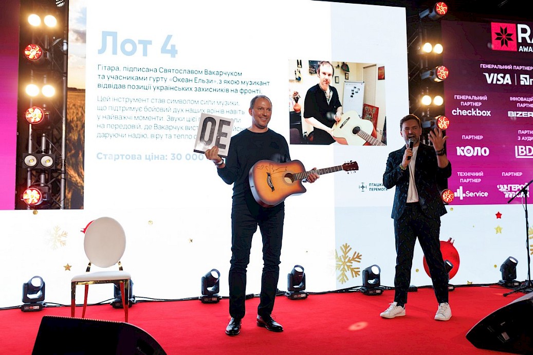 Четвертий лот – гітара з підписом лідера гурту «Океан Ельзи» Святослава Вакарчука, яка побувала на виступах музикантів в найгарячіших точках фронту, викликала чималий ажіотаж. В результаті аукціон виграв CEO Comfy Ігор Хижняк.