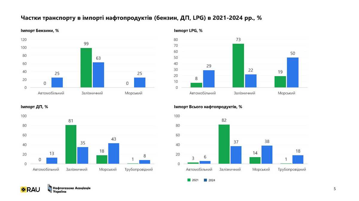Так само великих змін зазнали транспортні ланцюжки. Якщо в 2021 році більше 80% ПММ завозились залізницею, то зараз це 37%.