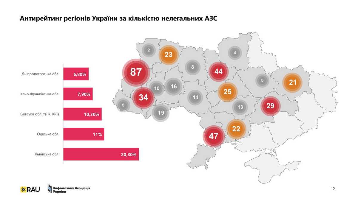 Другий блок – нелегальні АЗС. З 2019 року НАУ створила інтерактивну відкриту для кожного карту-сайт, де можна повідомити про такі АЗС. Ми говоримо про об’єкти роздрібної торгівлі пальним, які мають ознаки порушення містобудівного та/або фіскального законодавства. В 2019 році, коли ми вперше почали звертати увагу держави на цю проблему, ми фіксували майже 1500 таких об’єктів, станом на весну 2025-го ми відмічаємо трохи більше 400. І якщо раніше лідером був Київ та область, то останні кілька років лідером є Львівський регіон. І це попри роботу податкової, БЕБ, Національної поліції, місцевих адміністрацій. Дуже низький фінансовий поріг входу в цей, так би мовити, бізнес і можливість маніпулювати прогалинами в законодавстві. Саме на таких об’єктах відбувається перший крок у махінації. Коли паливо продається за готівку окремо, а документи на це пальне – окремо. Це відбувається завдяки втручанню в роботу каси, заміні форми оплати у фіскальному чеку з готівки на безготівку, торгівлю поза касовим апаратом.