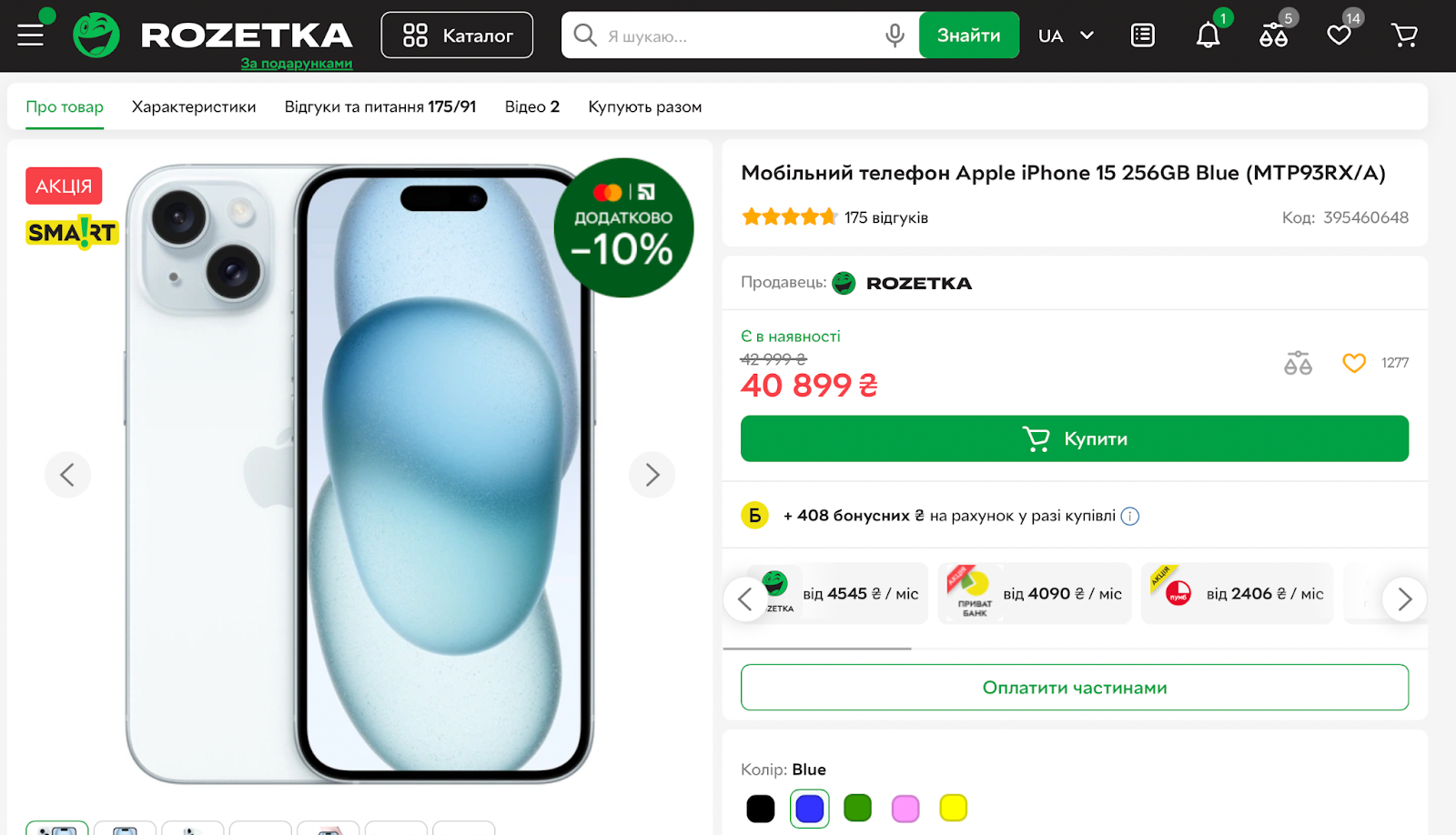 - На індекс також впливає, на скільки SKU з усіх товарів, де доступна оплата частинами, пропонують кращі умови.