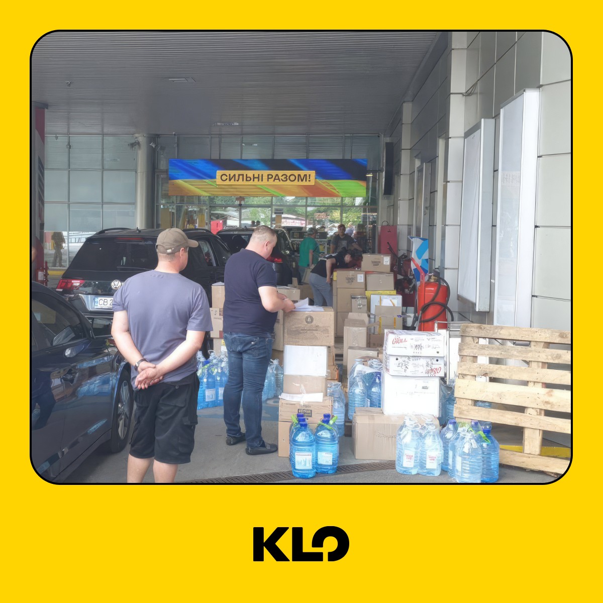 “Машина KLO разом з волонтерами доставить воду, засоби дезінфекції, побутову хімію, продукти тривалого зберігання та швидкого приготування, а також товари для особистої гігієни туди, де вони більше потрібні”, – повідомила компанія.