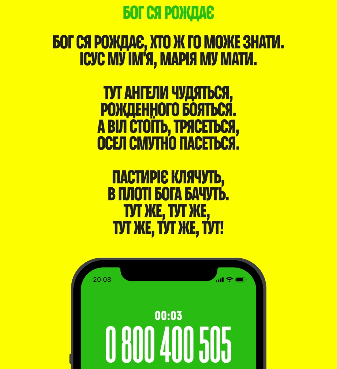Ідея кампанії – підтримати й зберегти традиції колядування та щедрування, яка передається в українських родинах із покоління в покоління. Для цього Comfy розмістили в Києві екрани з текстами автентичних різдвяних пісень і номером гарячої лінії, на яку кожен охочий міг заколядувати, а всі дзвінки записували.