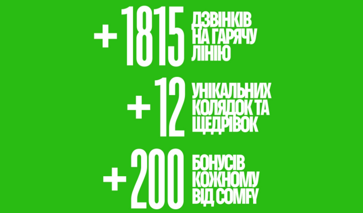 Цього Різдва Comfy зробили несподіваний крок – замість чергової святкової акції бренд відкрив гарячу лінію для колядування. Всі бажаючі могли подзвонити, заспівати колядку або щедрівку та отримати 200 бонусів на покупки в Comfy.