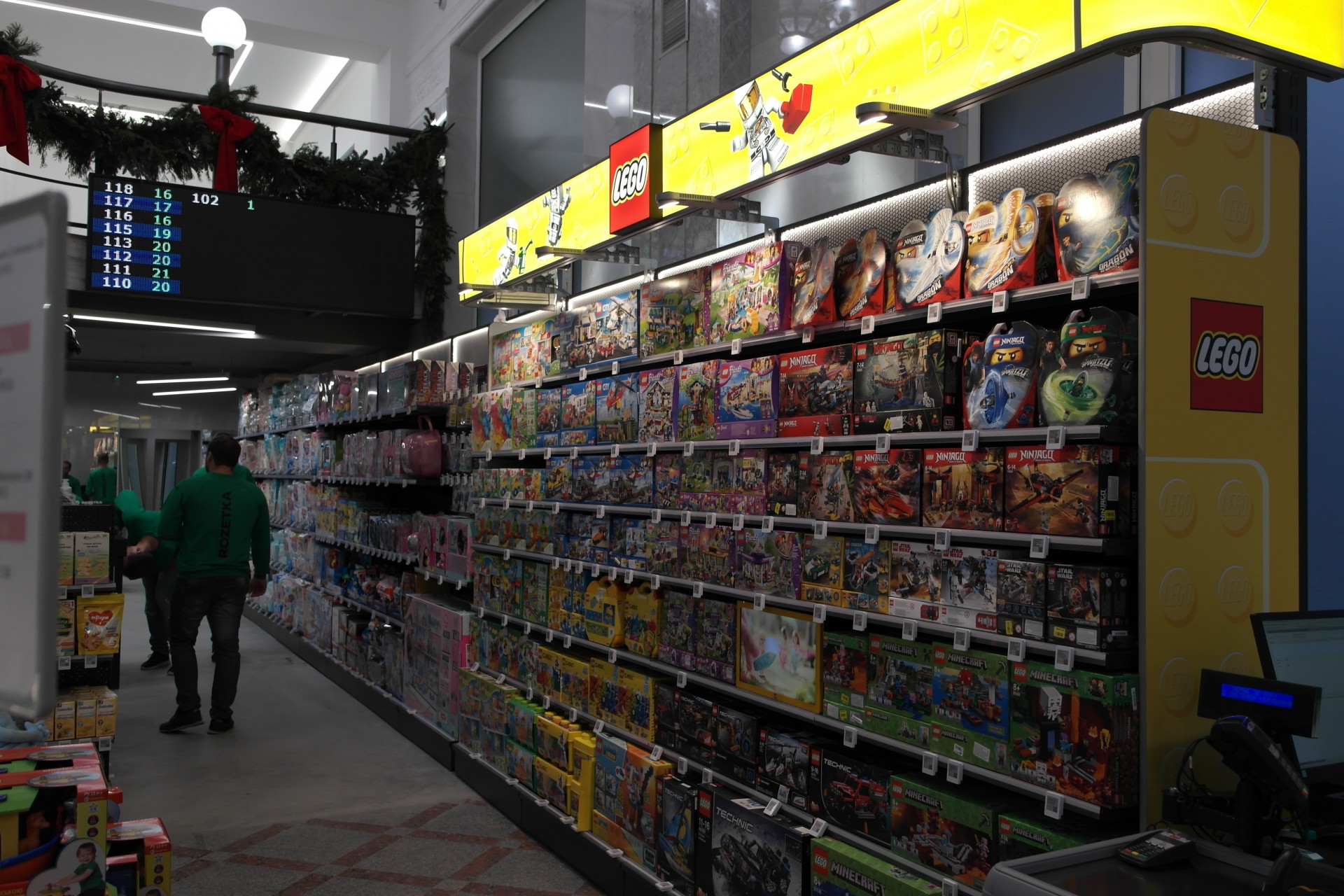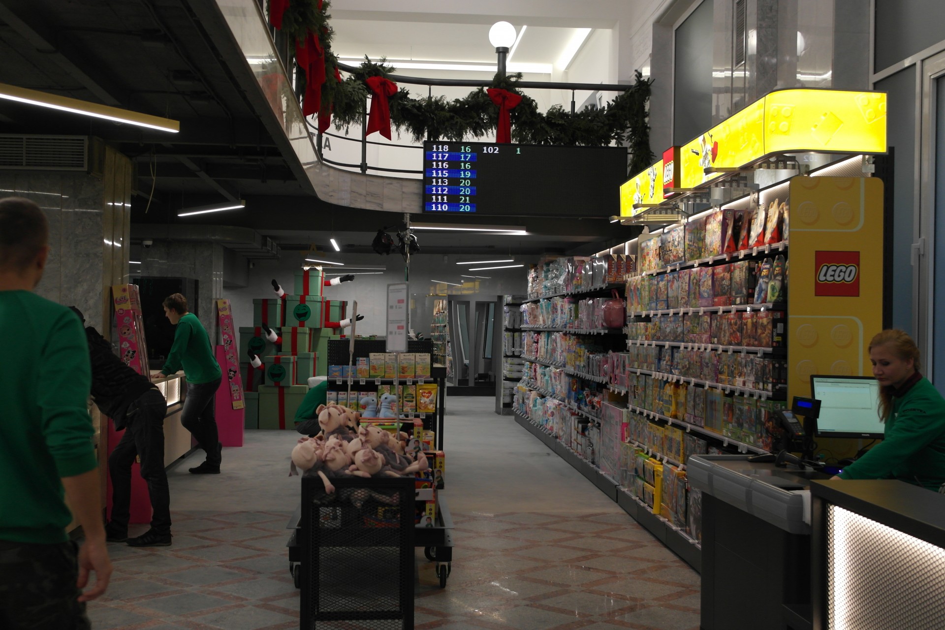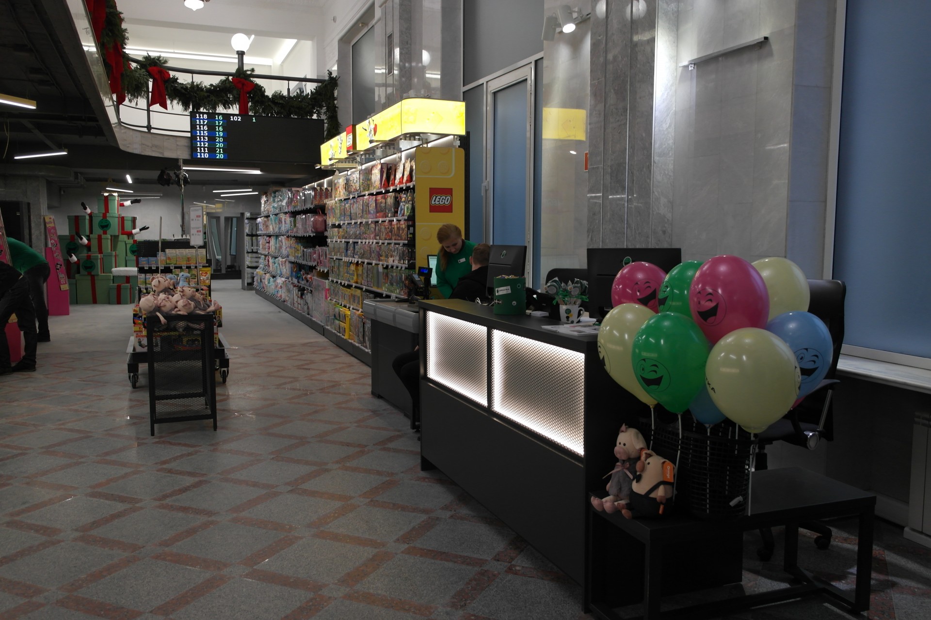 В середині залу розташована інсталяція – фотозона, на якій незабаром розмістять товар. За нею буде розташовуватися дитяча зона, з магнітними панелями, шахами, інтерактивною кухнею та іншими розвагами для дітей.