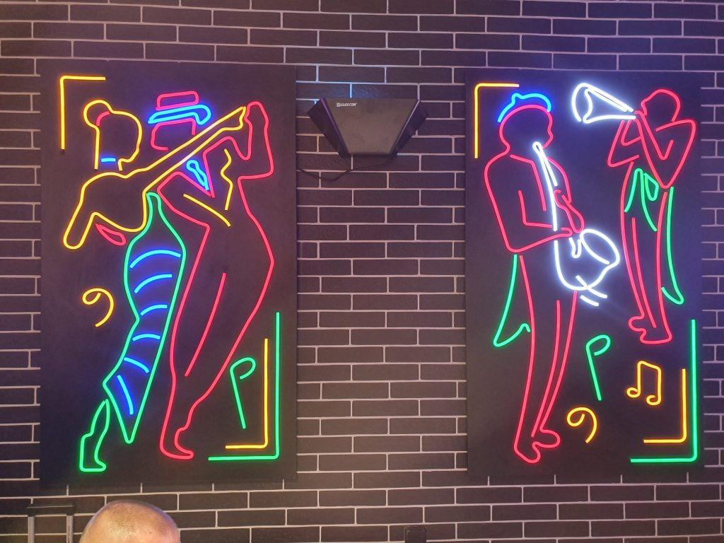 Але стиль “джаз” не був би джазовим, не будь саунд-дизайн супермаркету наповнений мотивами Луї Армстронга, Елли Фіцджеральд і багатьох інших легендарних виконавців експериментального стилю. Щоб надати цій аудіо-візуальній картині ще більшої атмосферності, поруч з гастрономією розмістили справжню сцену з роялем, де в день відкриття покупців і просто блукаючих роззяв розважали піаніст і саксофоніст.