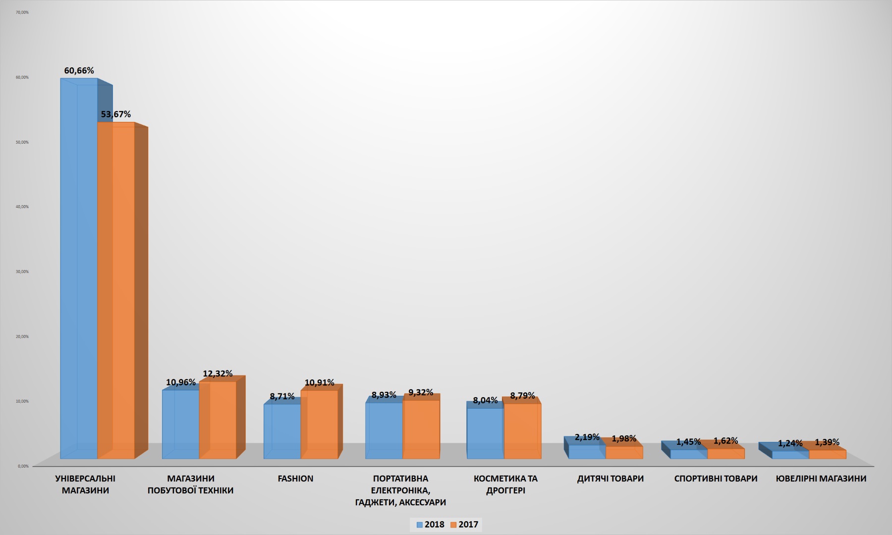 Це, певною мірою, може пояснюватися деякими змінами в вікових категоріях онлайн-покупців. У порівнянні з середньоукраїнськими показниками, універсальні магазини набагато частіше відвідують люди у віці 45+, а користувачі «за 65» дають сегменту солідні 13% відвідувань.