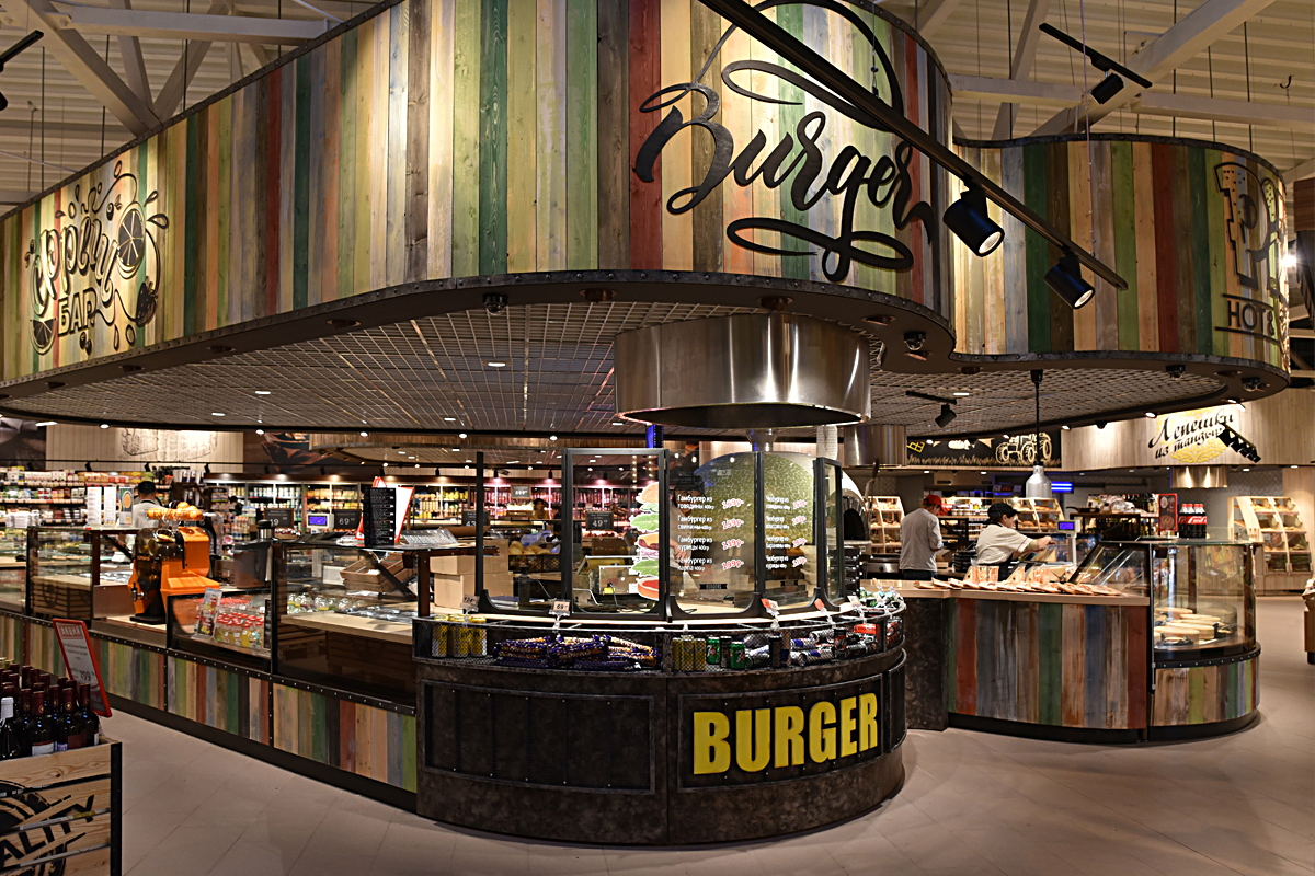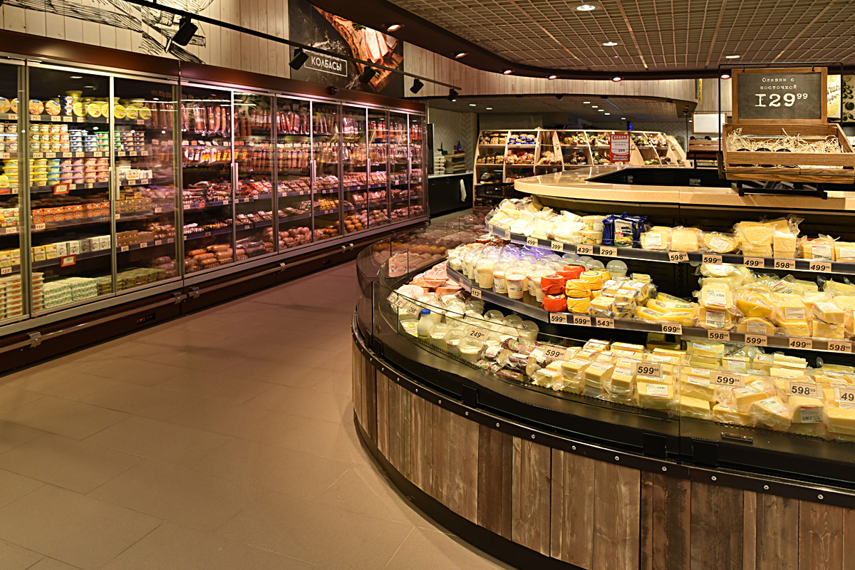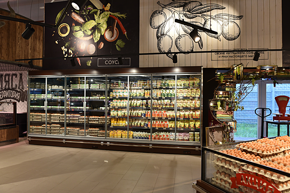 Пріоритетною лінією холоду в торговому залі стали острови гастрономічних холодильних вітрин з багаторівневою експозиційної поверхнею. Продаж свіжого м’яса і риби організована в двох лініях з індивідуальним декором передніх панелей. У кулінарному відділі супермаркету представлені свіжі салати, холодні закуски, приготовані кухарями SPAR. Фотографії компанії Технохолод.