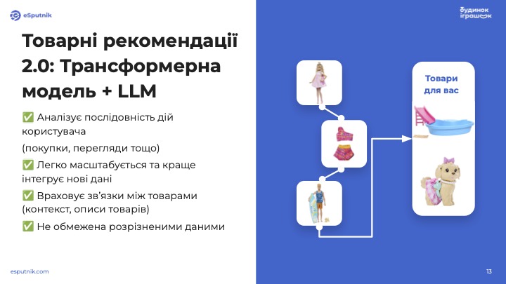 Окрему увагу варто приділити AI-рекомендаціям. Впровадження блоків рекомендацій ("З цим купують", "Схожі товари") на сайті та в застосунку демонструє значне зростання Conversion Rate (CR):